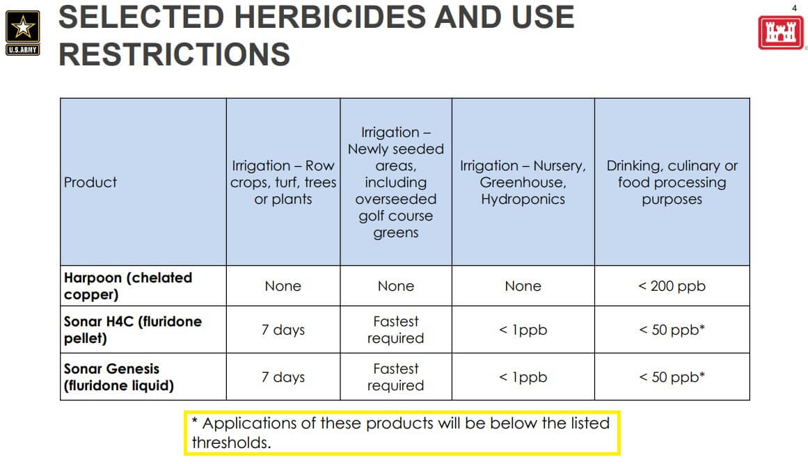 Q: Research indicates that treatment should continue several years after the last Hydrilla plant is found – to kill all the tubers. What are the plans for these treatment areas as plants stop being found?